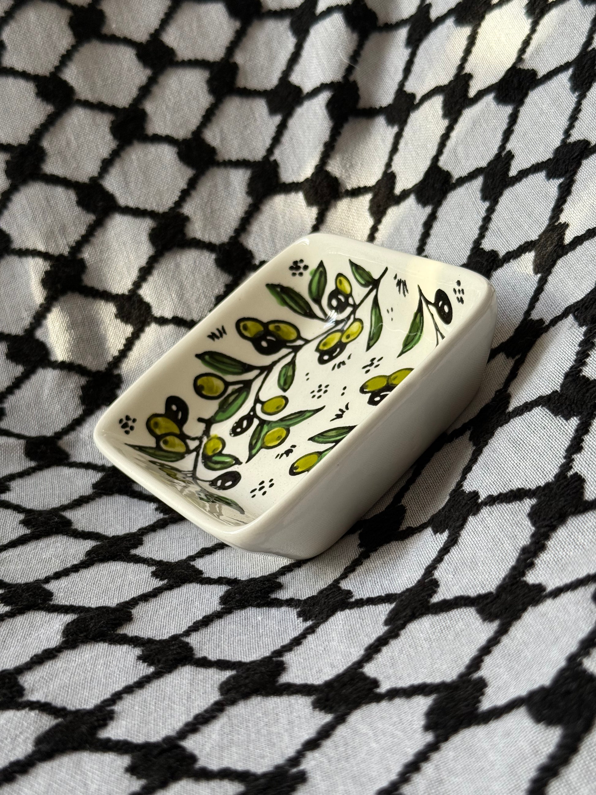 Featuring the olive design, this serving plate represents the deep connection of olives with the Palestinian people and culture.