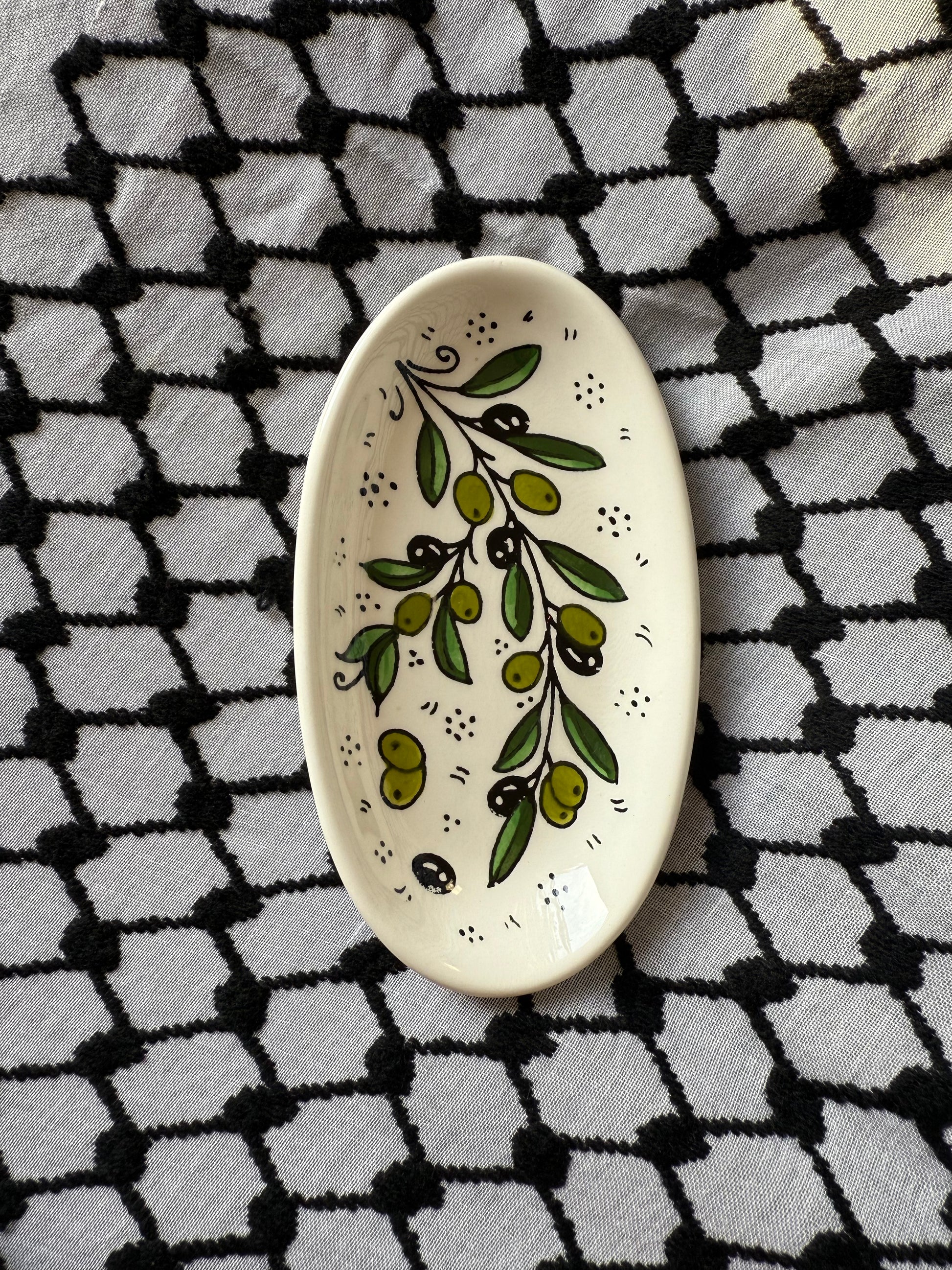 Featuring the olive design, this serving plate represents the deep connection of olives with the Palestinian people and culture.