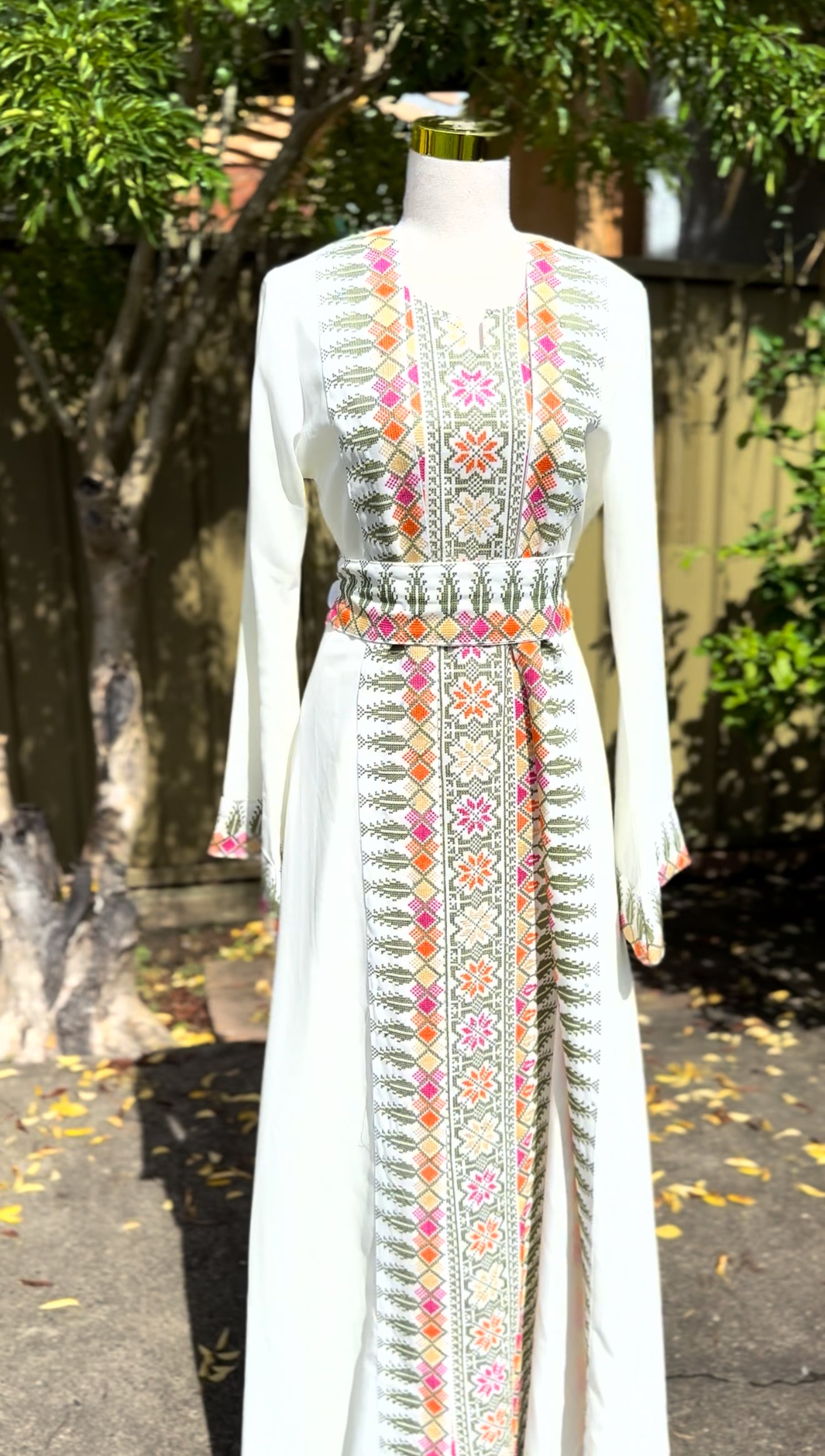 Elegant 3 Piece Palestinian Thobe showcasing the beauty of the Palestinian Culture and Heritage.