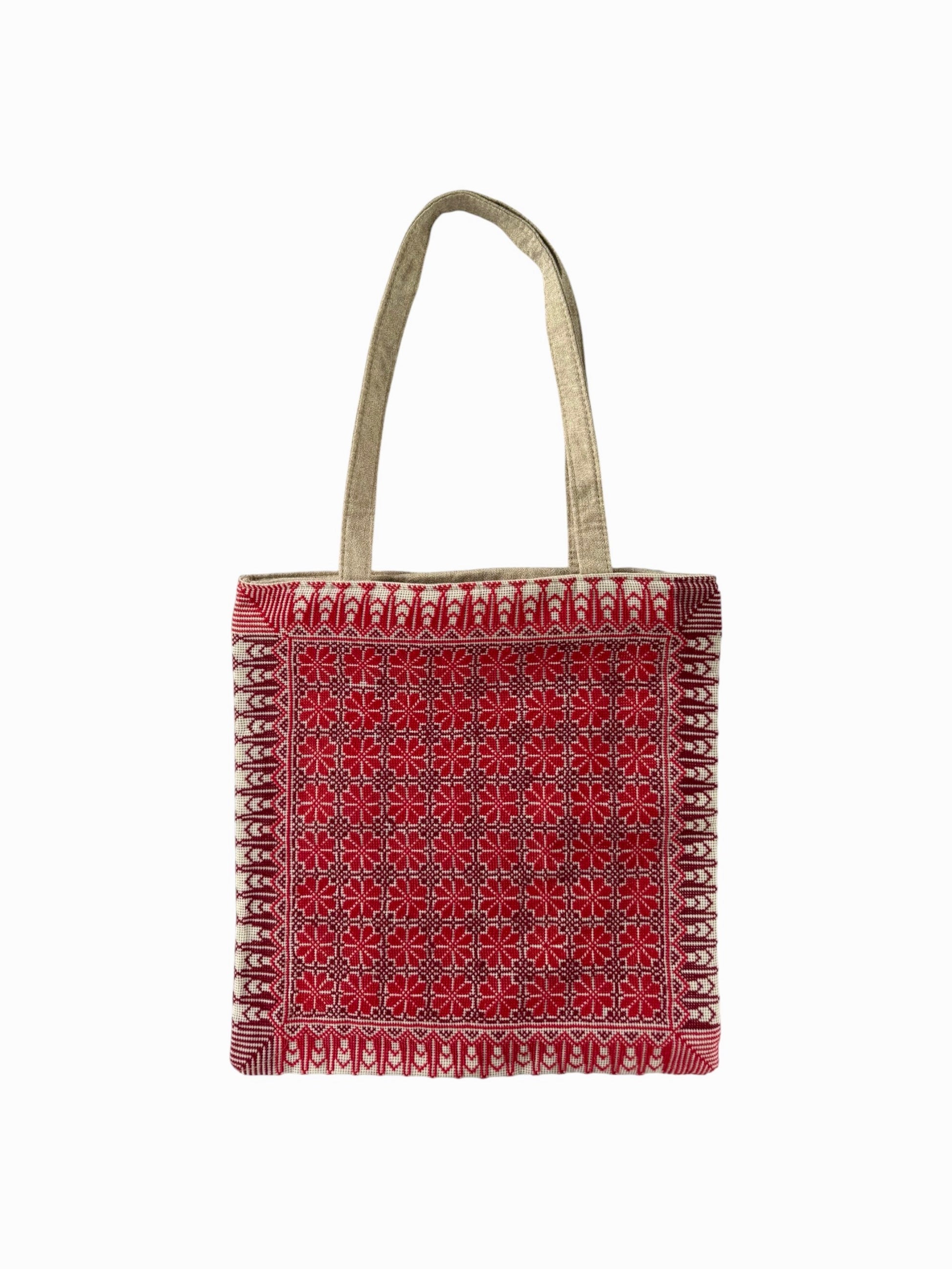 Hand Embroidered Tote Bag - Red