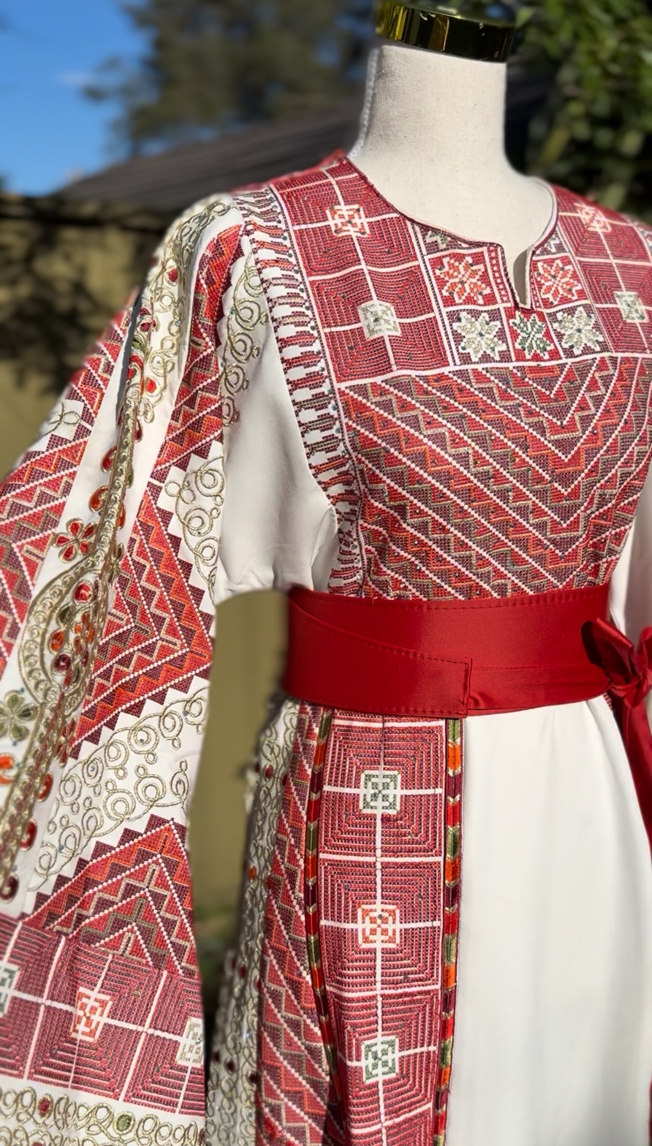 - Matching Embroidered Belt Included, Red Saya Belt Sold Separately