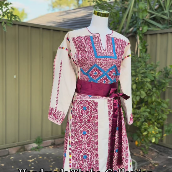 Ramallah Hand Embroidered Beige Thobe with Tahriri stitch