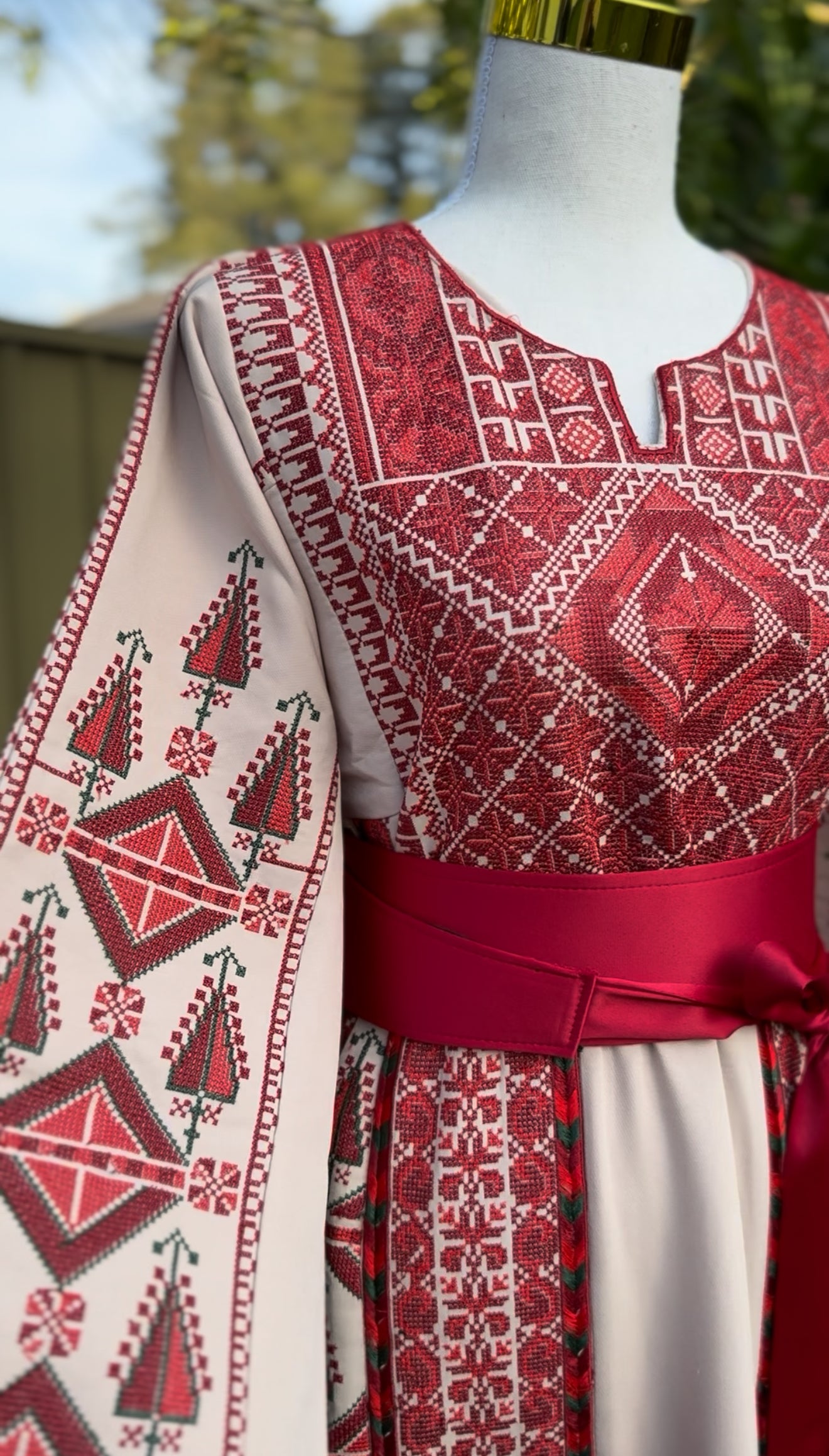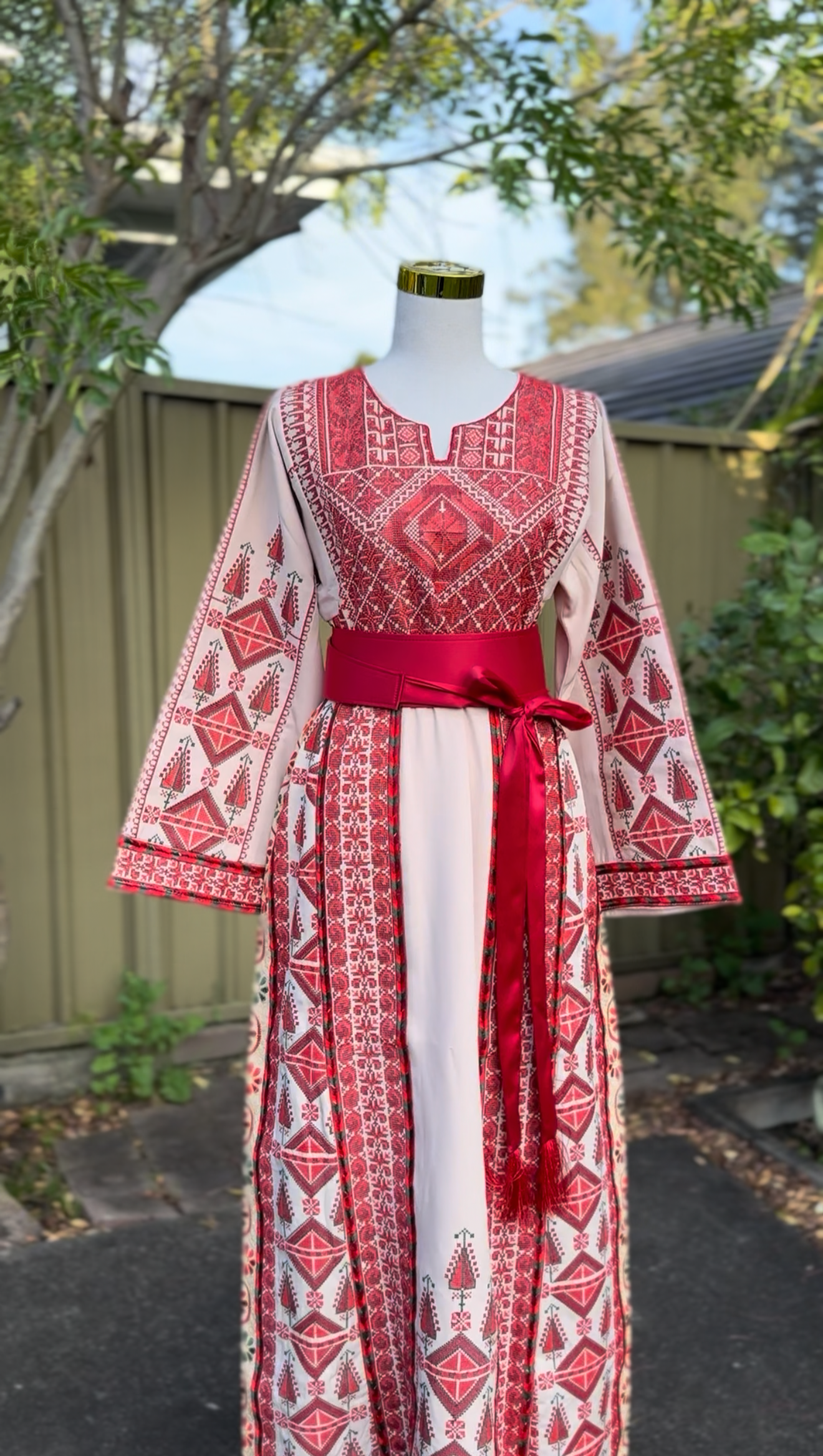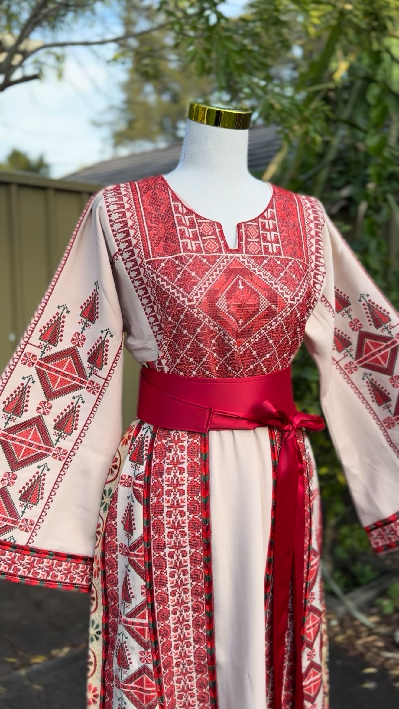 Our newest and exclusive Red Rafah Thobe Stitched to Perfection, this thobe is a staple in everyones thobe collection and is made specially for the Queen in you