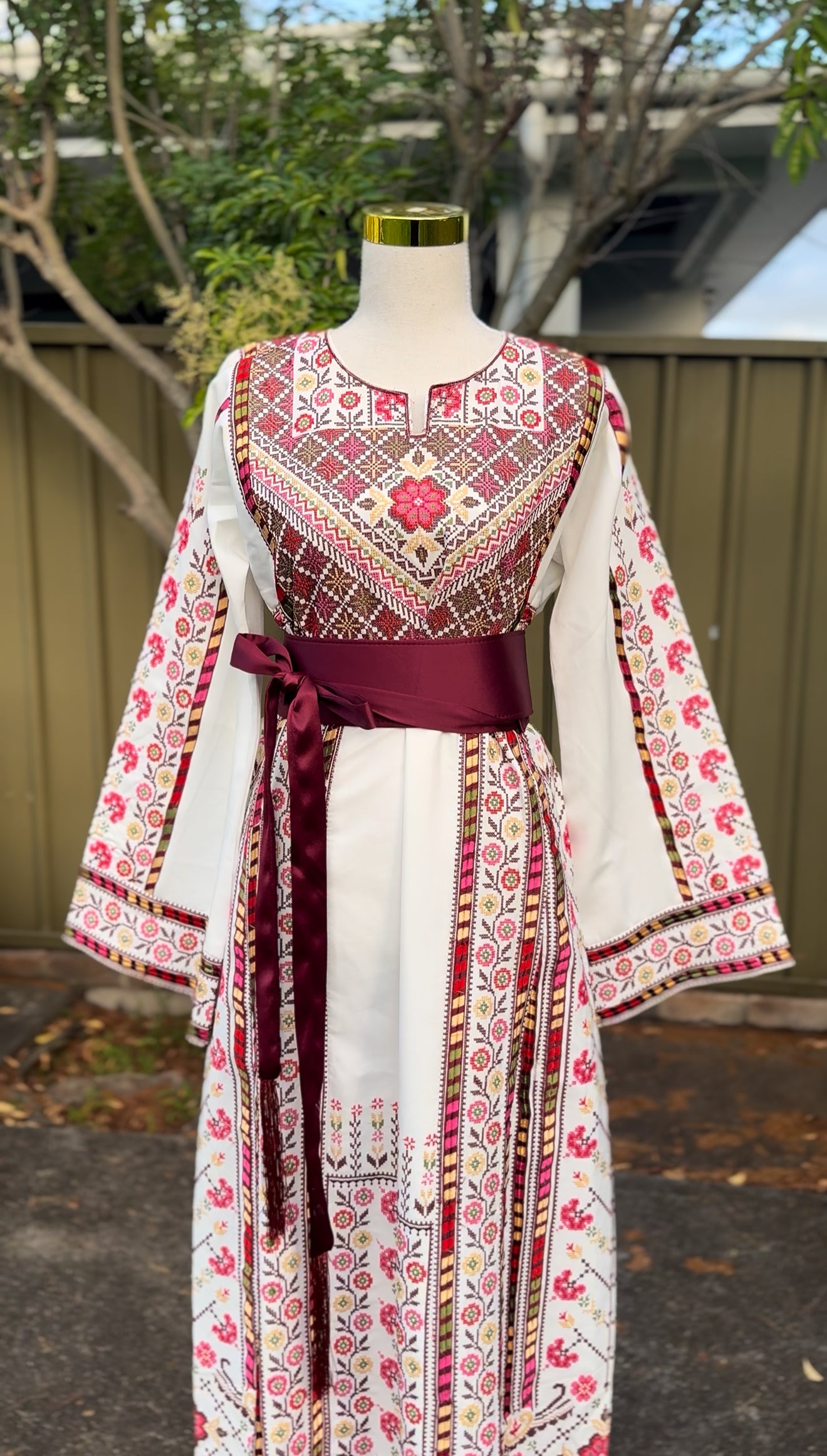 - Heavy embroidery on the front and back of the dress